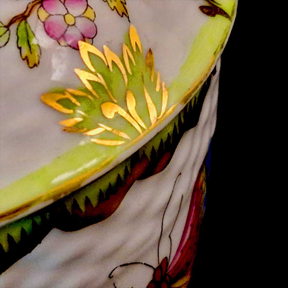 A classic and elegant Herend piece that remains highly decorative and collectible despite the visible wear to the gilding of the upper part.
