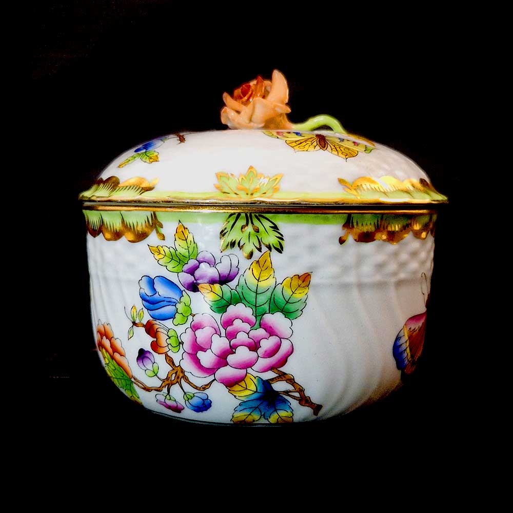 Be the first to review “Herend Large Porcelain Sugar Bowl – Victoria (VBO) Pattern with Rose Finial”