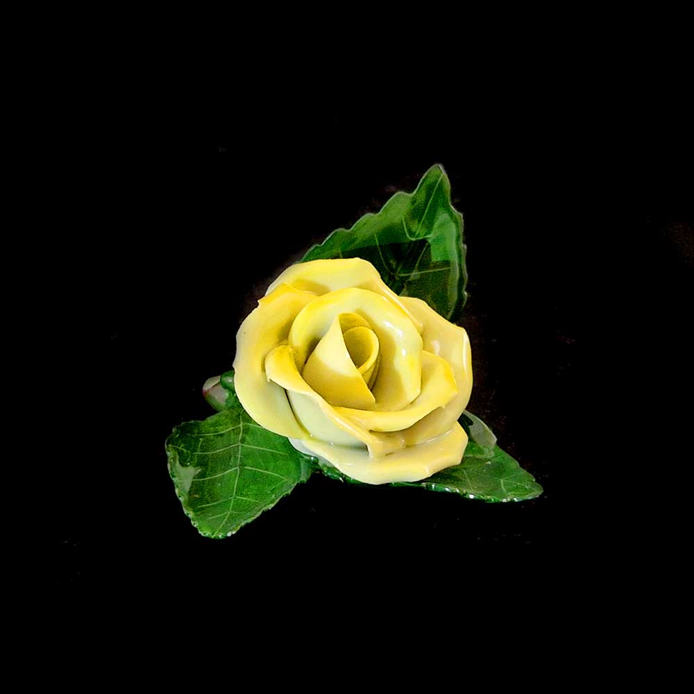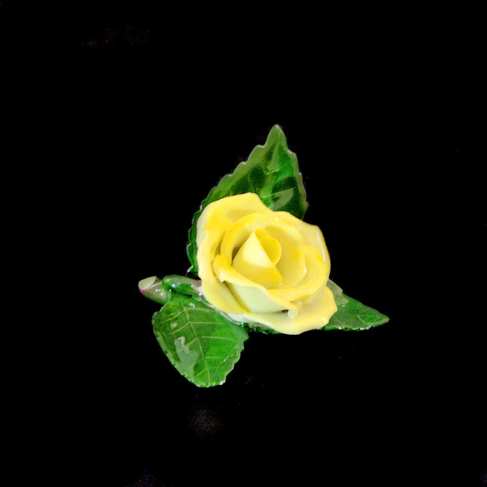 Original Herend porcelain rose table decoration, finely crafted in a vibrant yellow color with delicate, detailed petals. A charming yet elegant decorative piece, perfect for display or as a table accent.